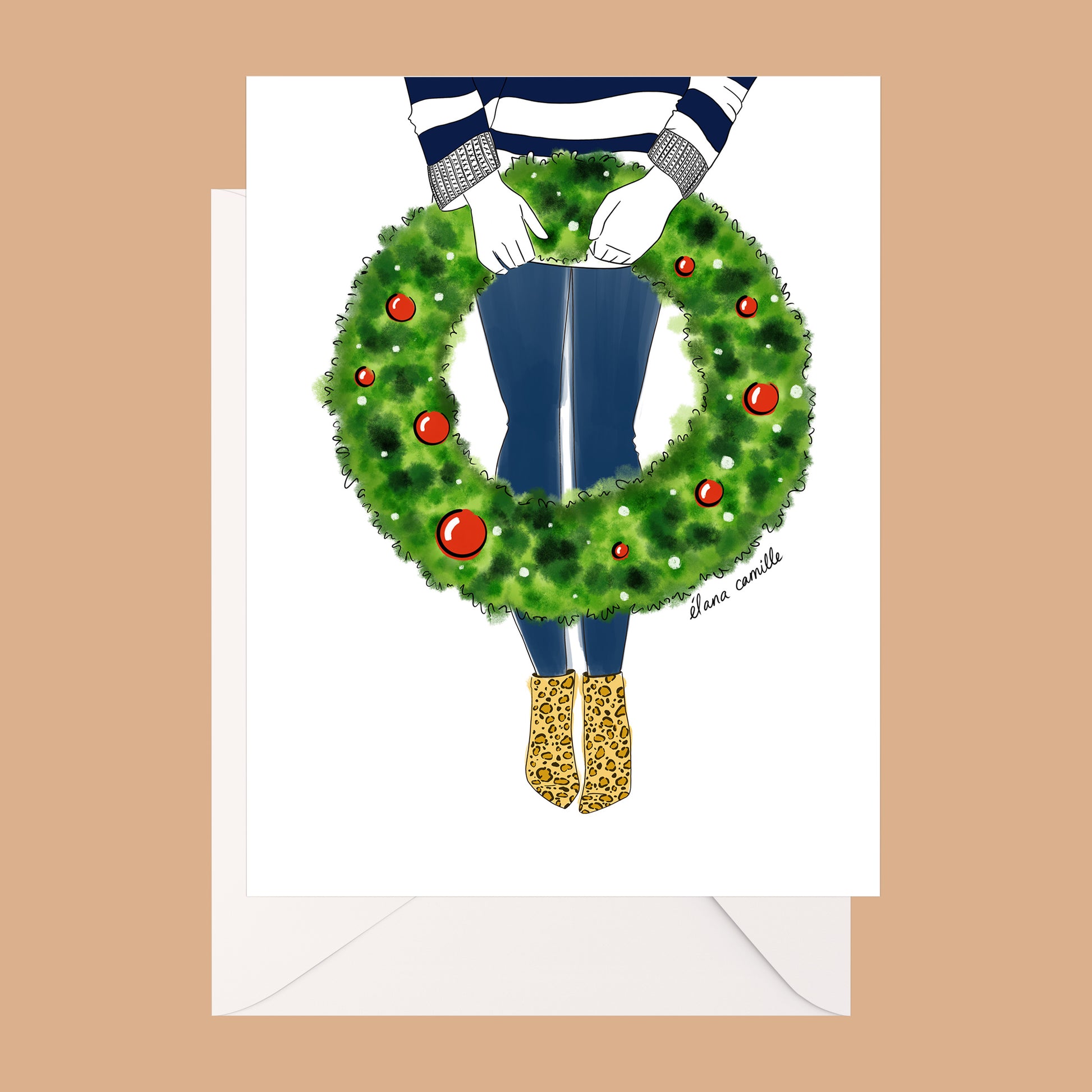 Holiday styling… but make it fashion! Leopard print booties, striped sweater & a beautiful Christmas wreath!