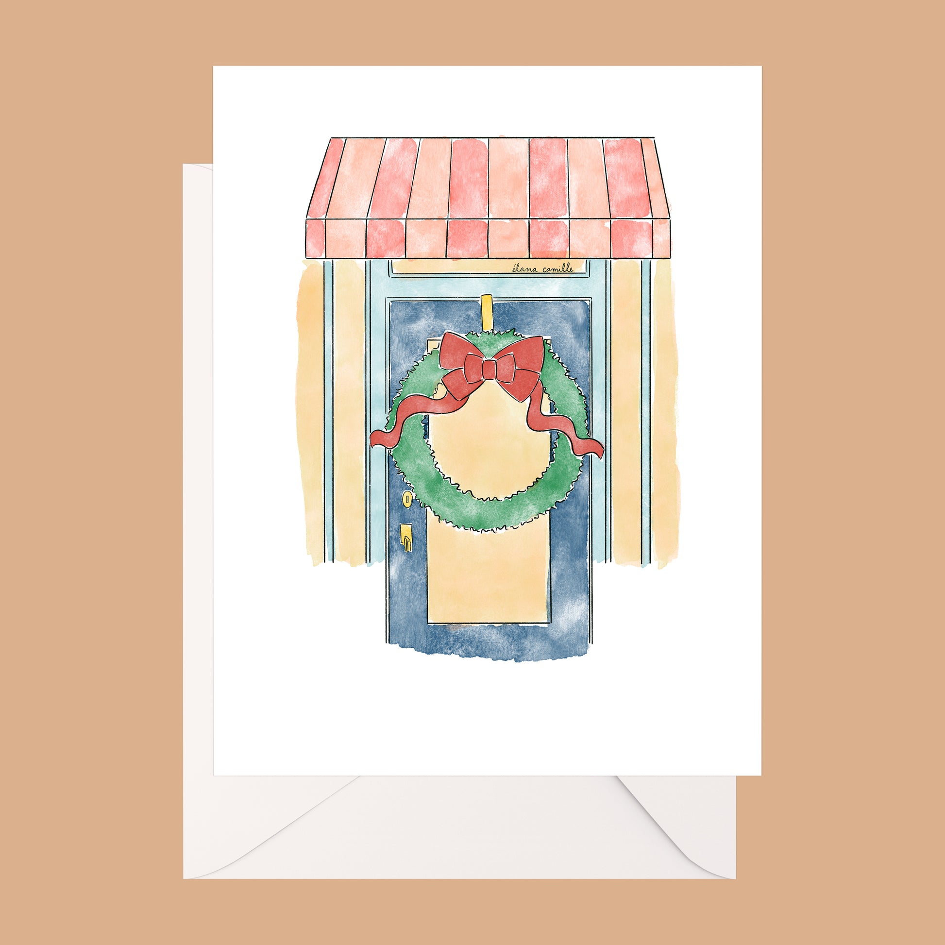 Get festive with this charming shop front card—perfect for spreading some holiday cheer!